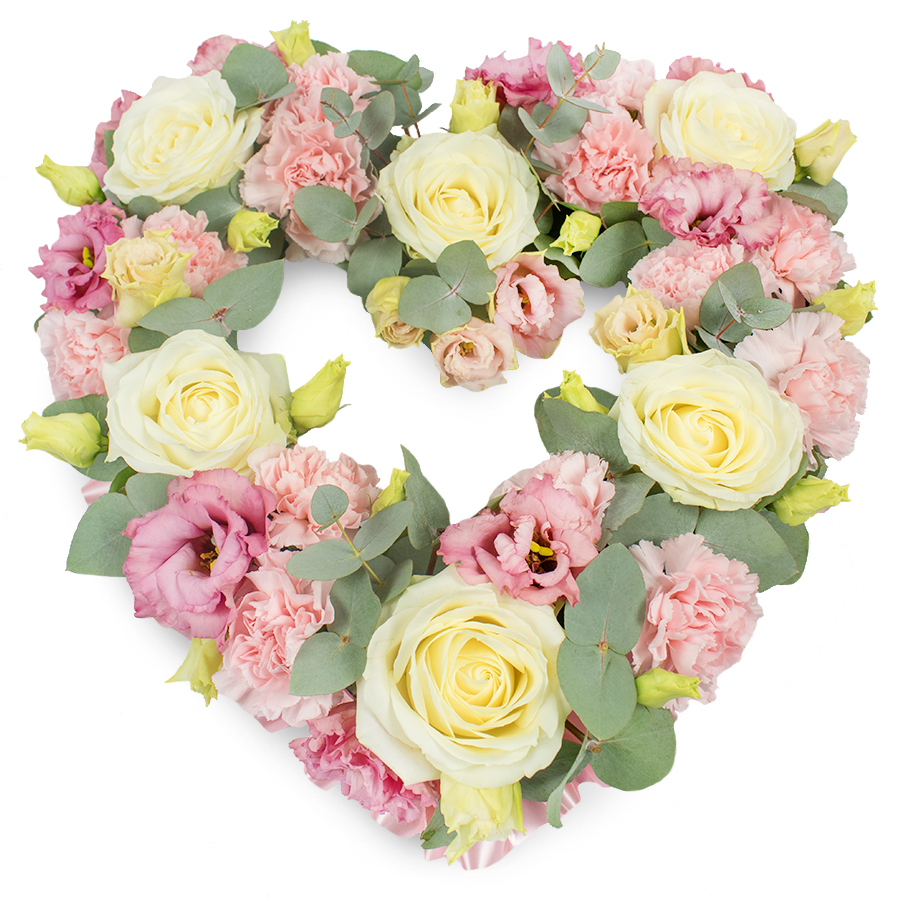Celebrate cherished memories with our Heartfelt Memorial Floral Tribute. This exquisite arrangement is thoughtfully designed with hand-selected, fresh blooms that radiate timeless elegance and warmth. The bouquet features graceful white roses, radiant pink carnations, and charming pink lisianthus, harmoniously balanced with vibrant eucalyptus leaves.